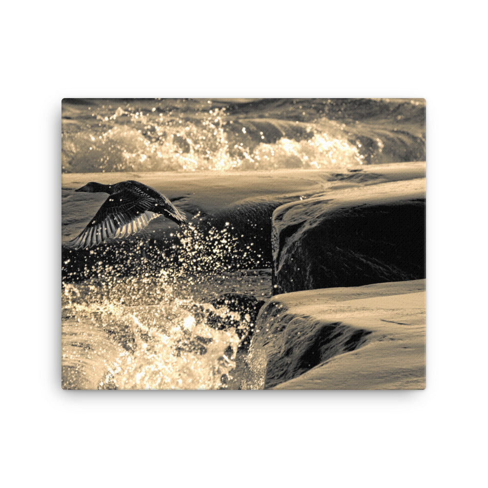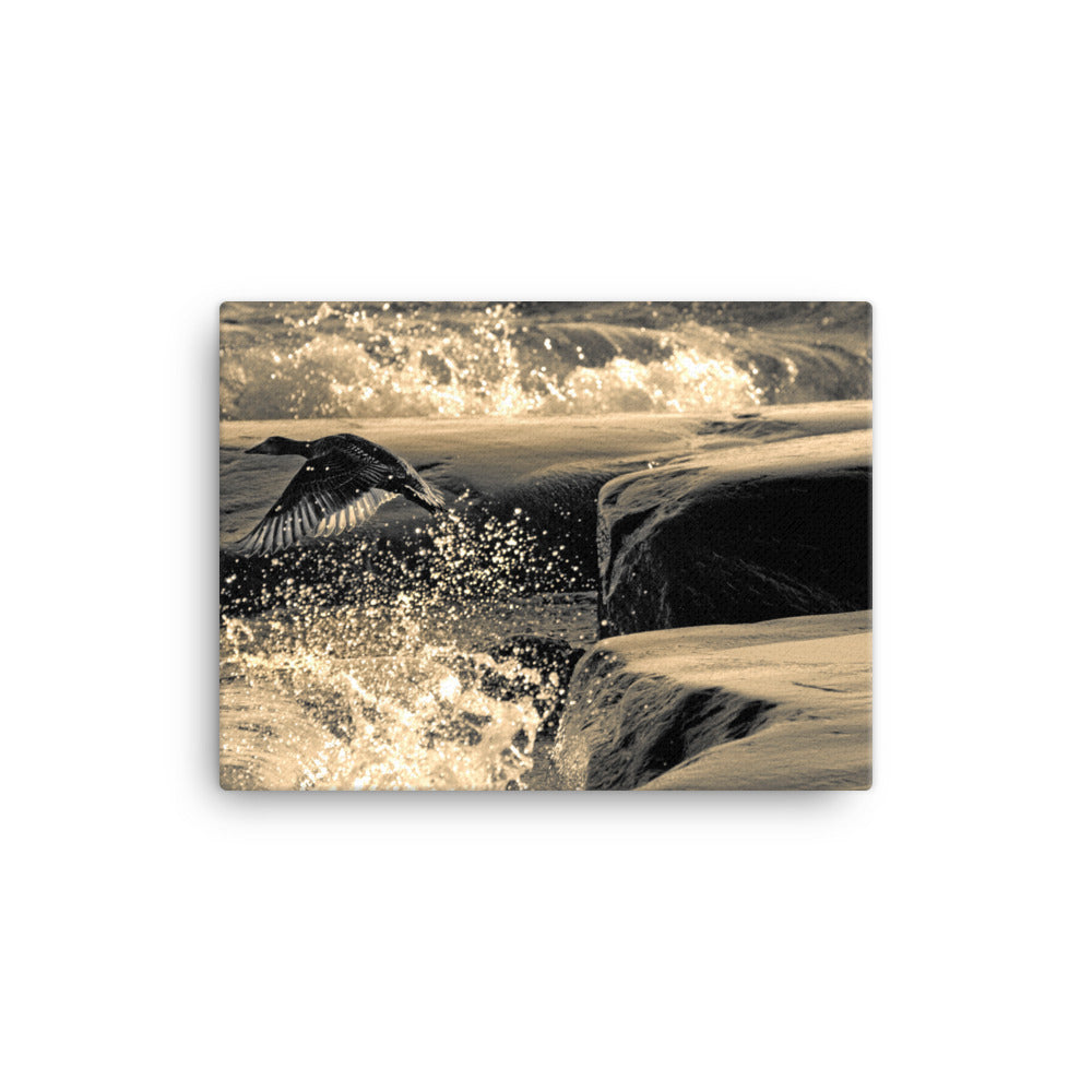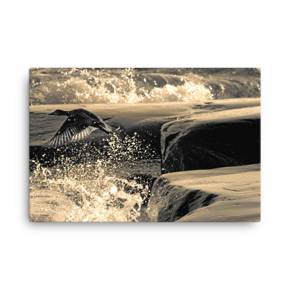 Bildens kanter fortsätter direkt genom kanterna på Canvas-målningen bakom den, vilket ger bilden djup och skapar stämning.